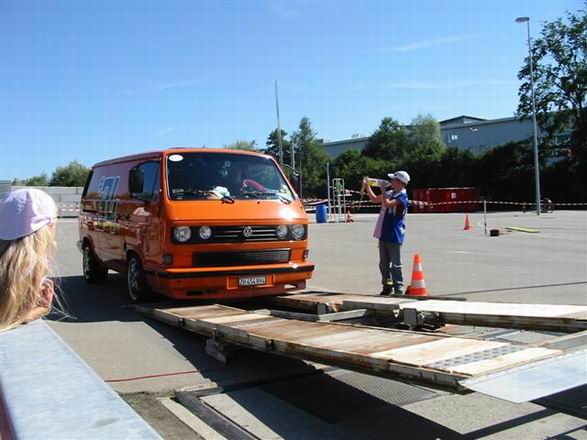 Sarah Heers hat mit dem gelben Bus den 2. Platz in der Frauenrangliste am Geschicklichkeitsfahren gemacht.
